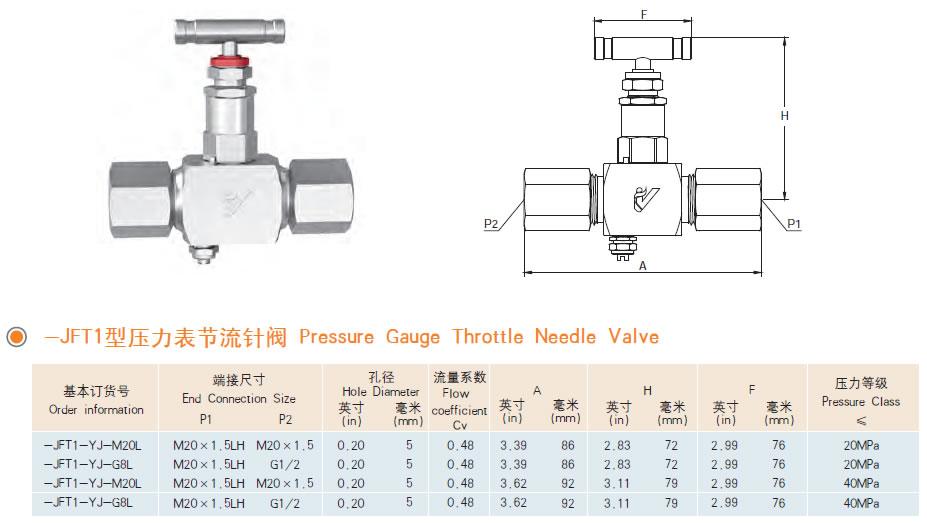 JFT1型压力表节流针阀