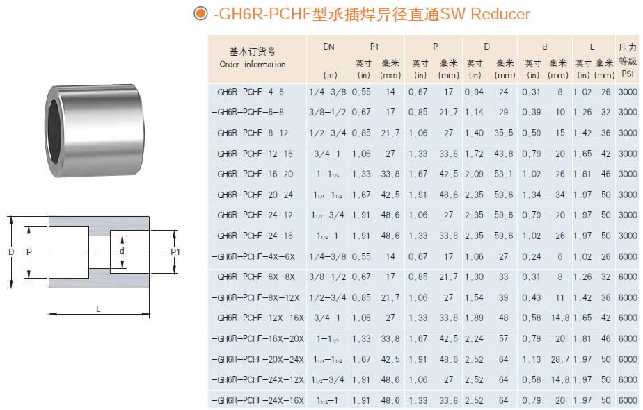 GH6R-PCHF型承插焊异径直通