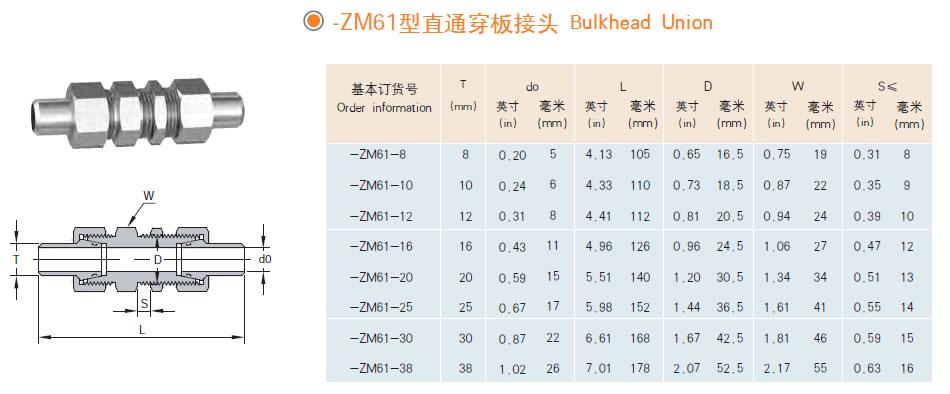 ZM61型直通穿板接头