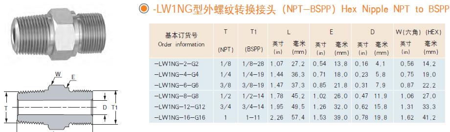 LW1NG型外螺纹转换接头