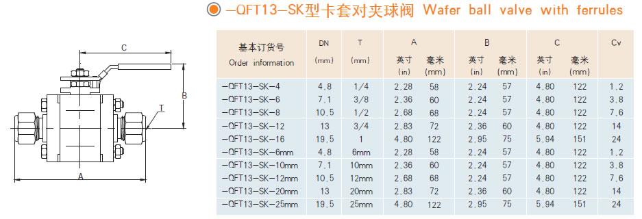 QFT13-SK型卡套对夹球阀