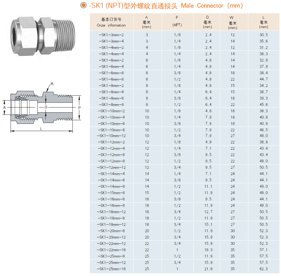 SK1(NPT)型外螺纹直通接头