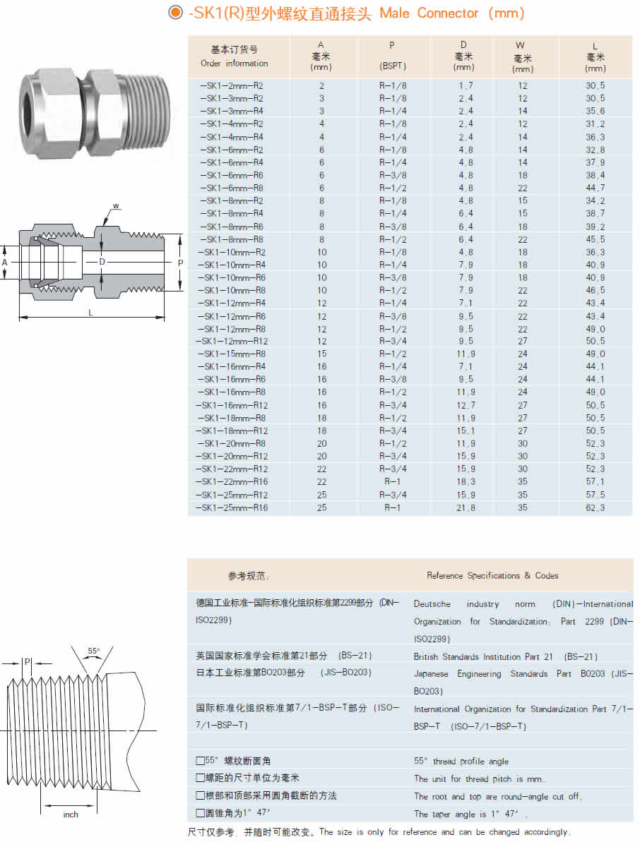 SK1(R)型外螺纹直通接头